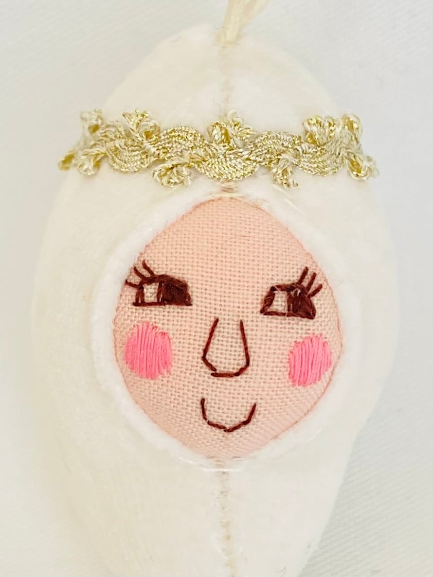 顔は下書き無しの手刺繍で描き、型紙も無し。