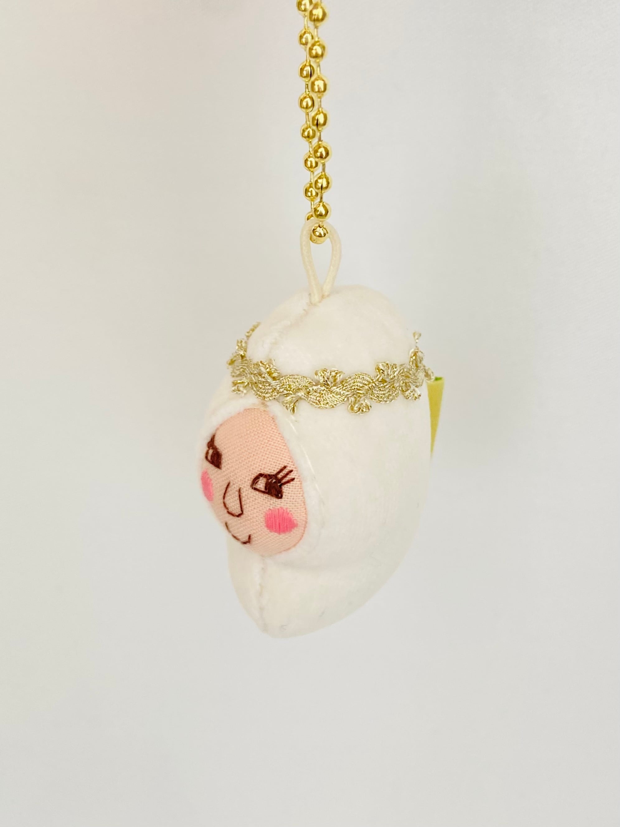 冠と同じ金色のボールチェーンを