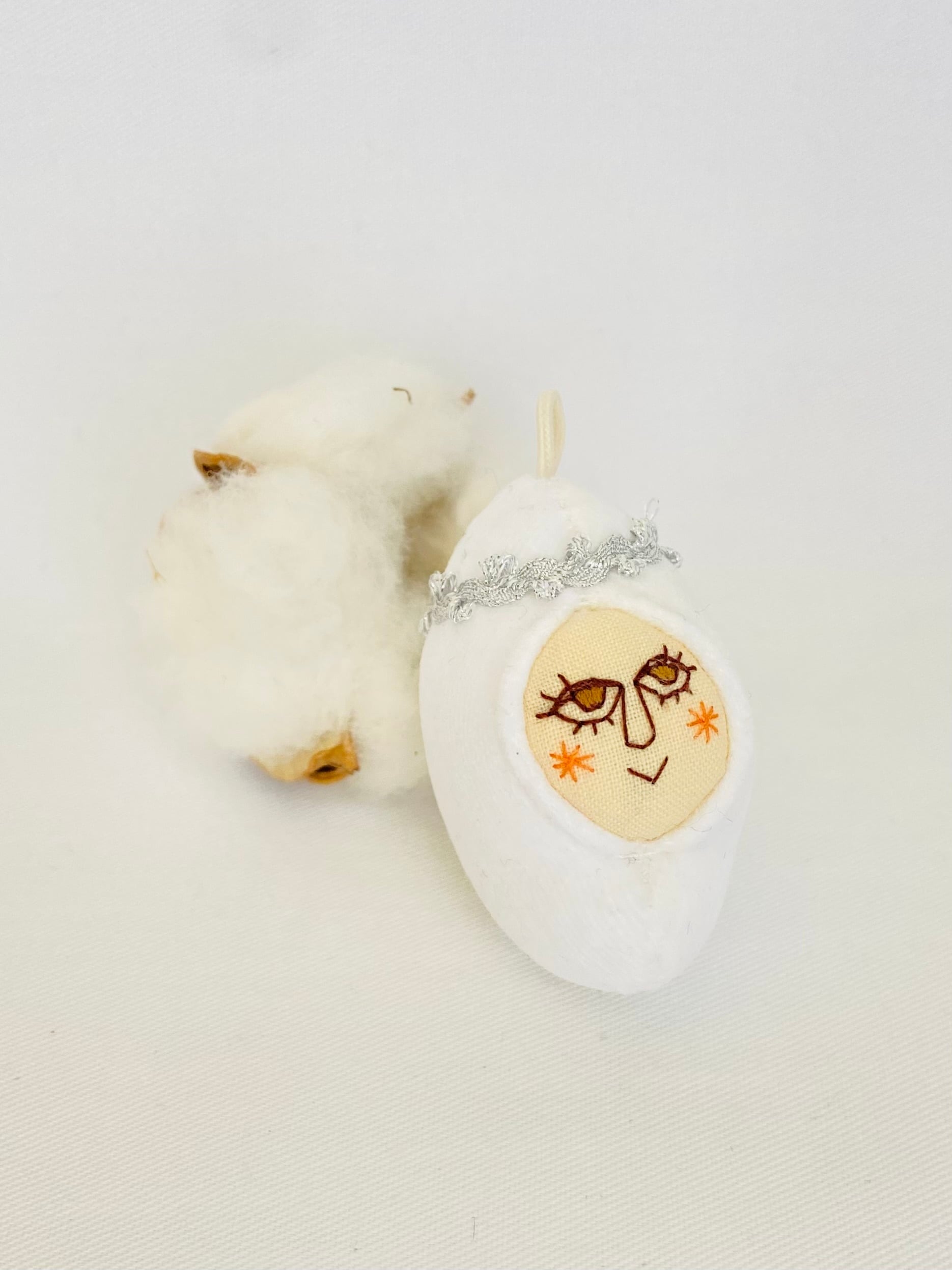 顔は下書き無しの手刺繍で描き、型紙も無し。