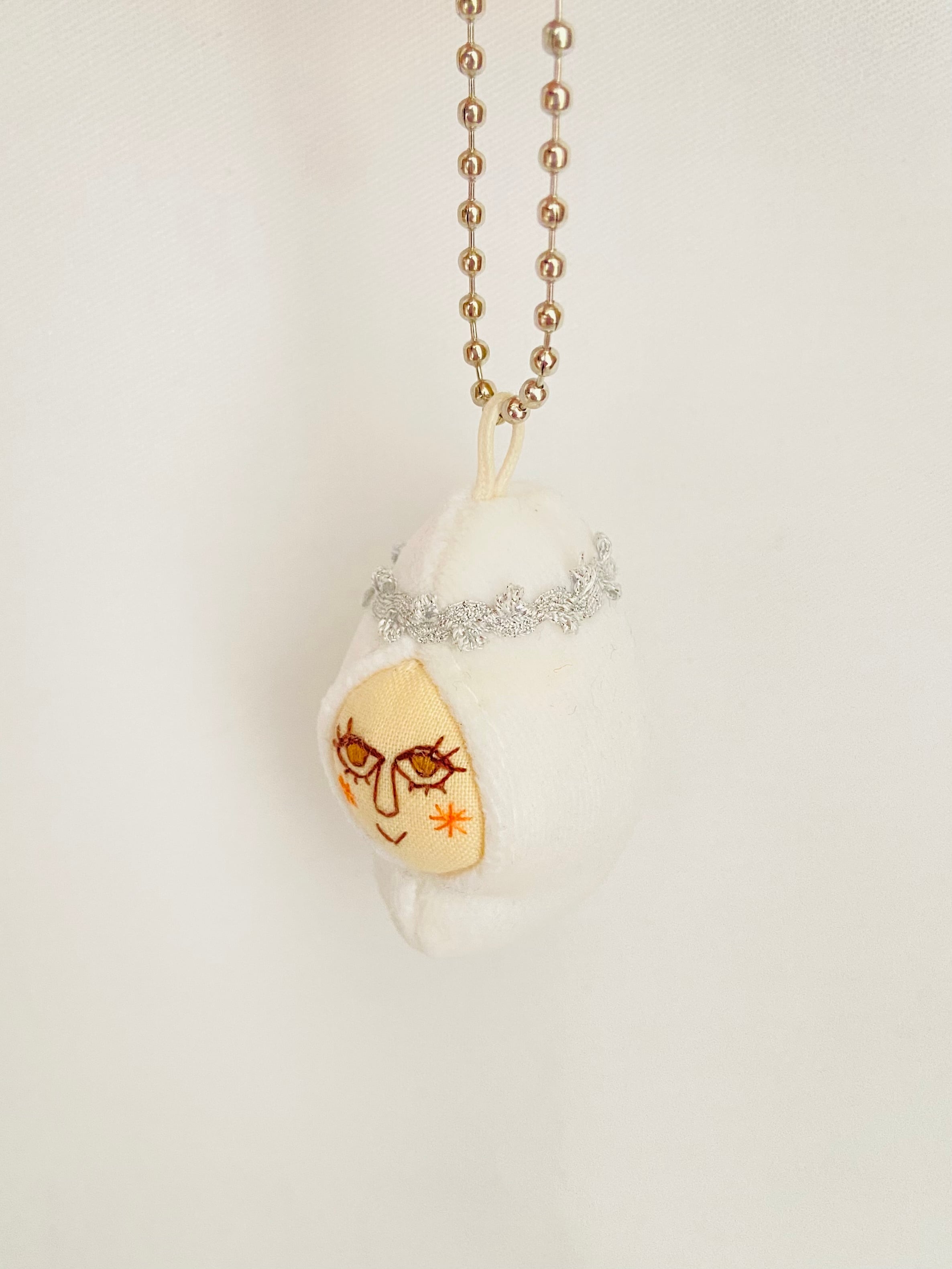 冠と同じ銀色のボールチェーンを