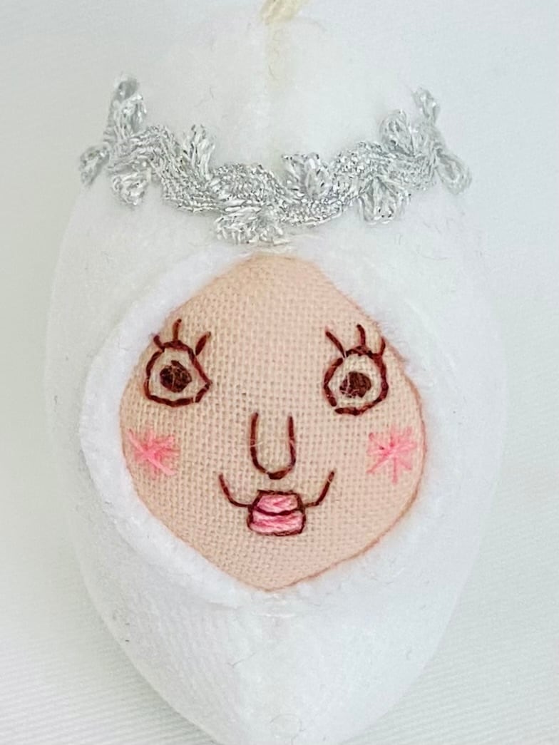 顔は下書き無しの手刺繍で描き、型紙も無し。