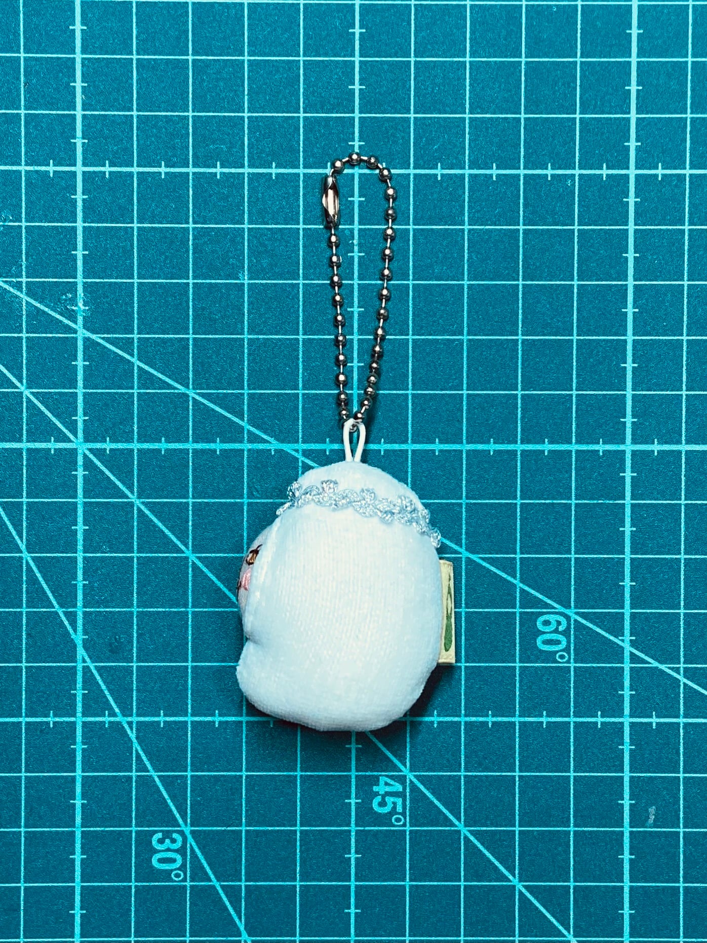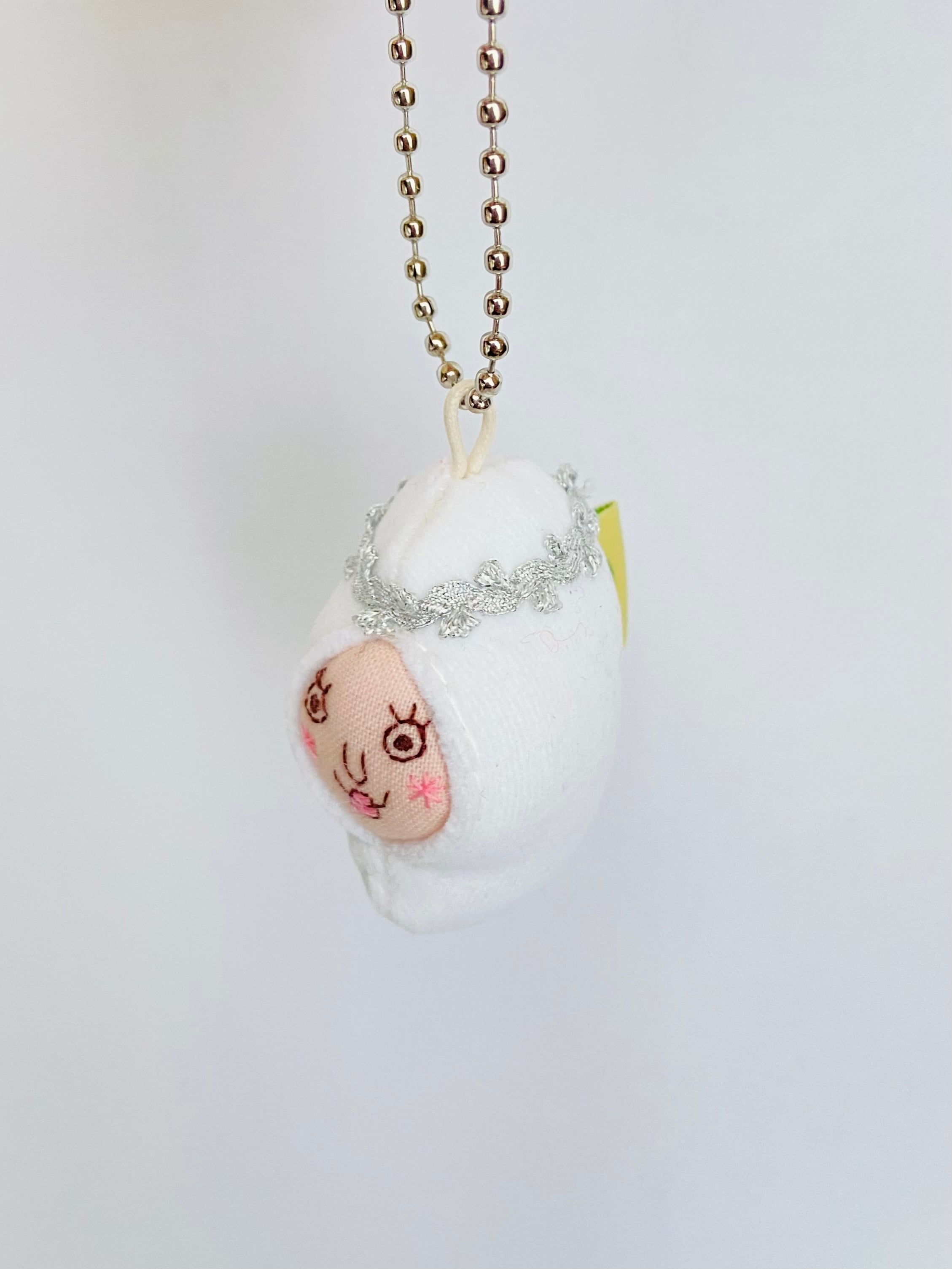 冠と同じ銀色のボールチェーンを