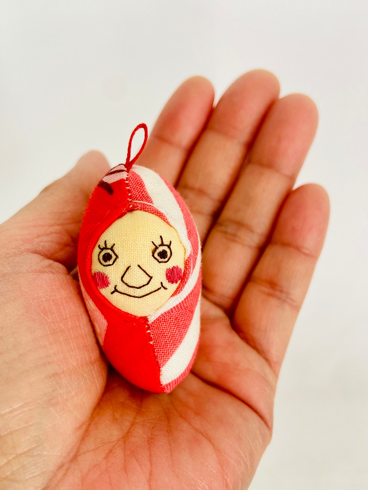 顔は下書き無しの手刺繍で描き、型紙も無し。